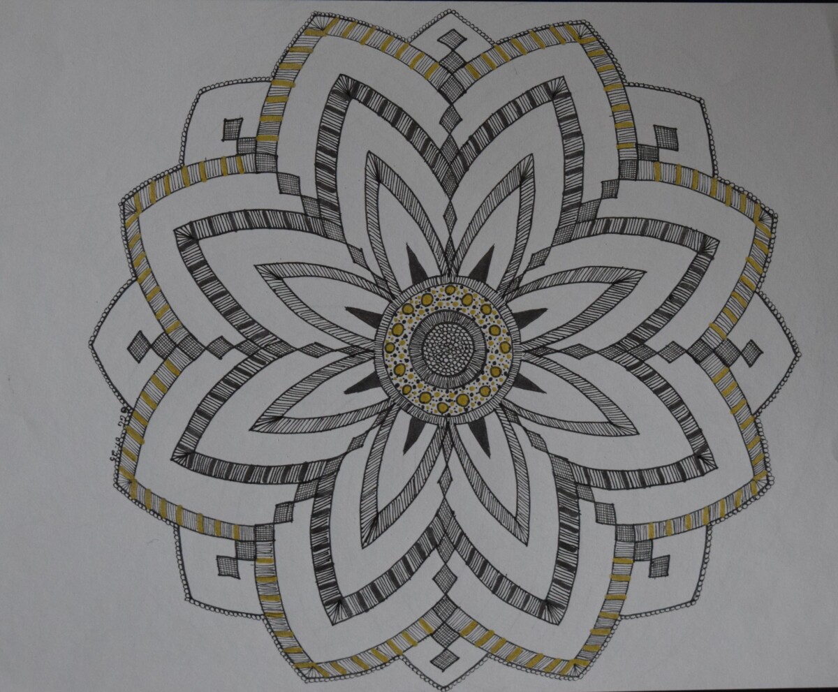 Gwen Hovey discovered creativity later in life. She came to it through the passage of time and the urge to connect with a calmer way to approach life. She needed a simple and straightforward means to do this, so she focused on her “doodling” skills honed during meetings and presentations at work.