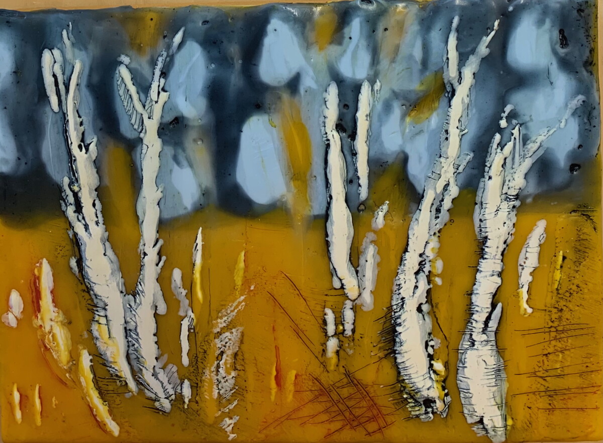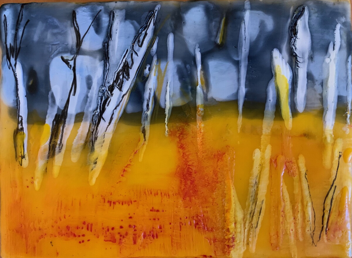 Marion learned about encaustic in school by studying the Fayum portraits and have took extensive courses with Andrea Bird at Meta4 in Port Perry and at The Hive in Alton, with Susan Fisher at Haliburton School of the Arts and with both Cynthia Winika and Lisa Pressman at R&F Encaustics in New York. She’s taught numerous beginner classes in encaustic at her studio and usually demonstrate during studio tours.