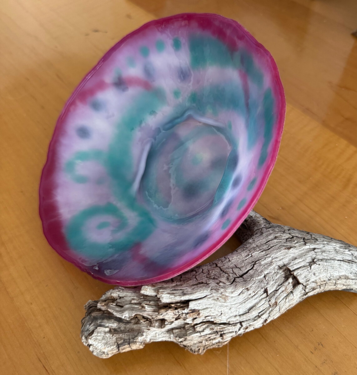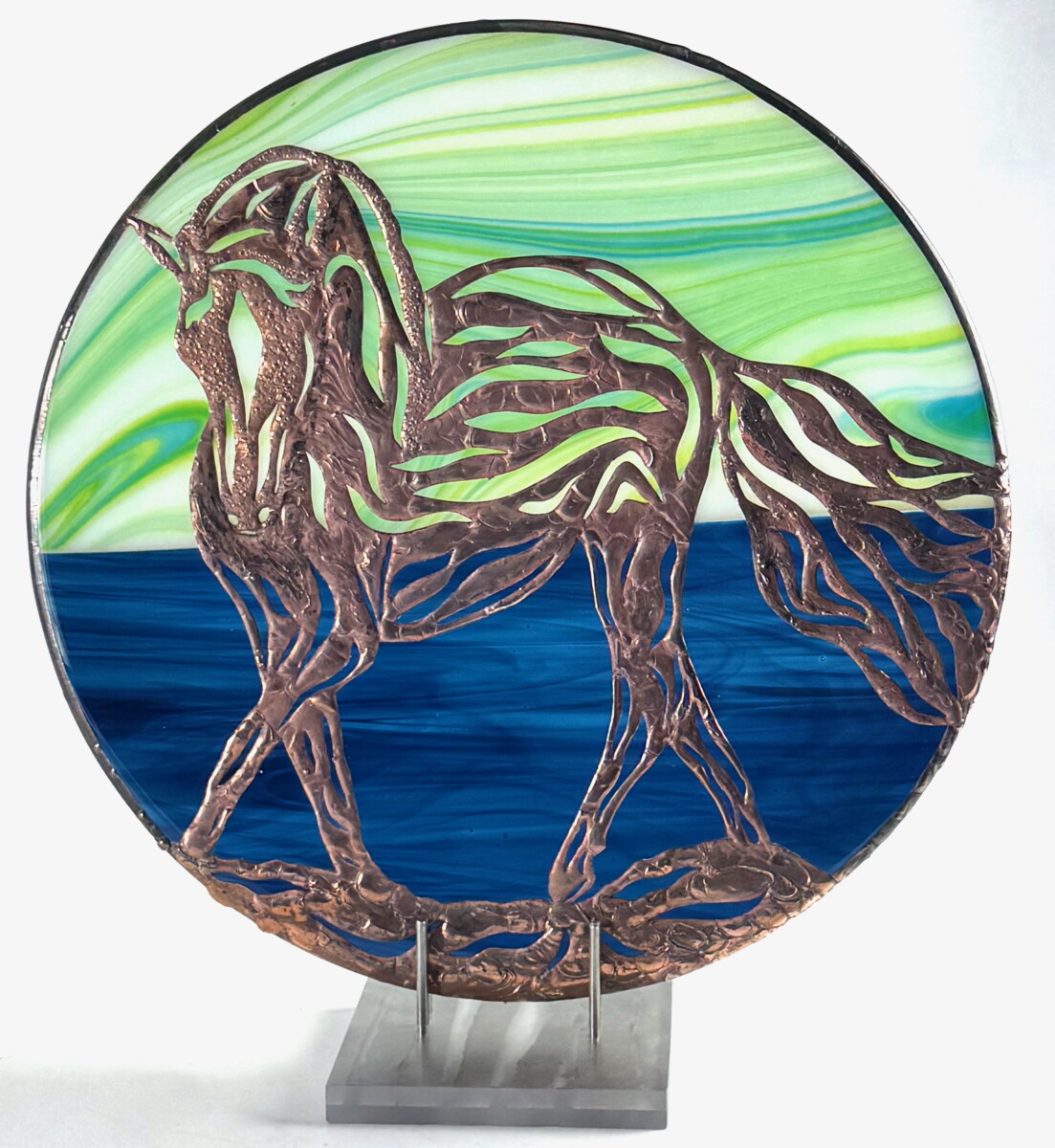 “The scope of glass as a medium captivates me and has taken hold: colour, depth, light and shadow…. It’s irresistible. The transformational possibilities with kiln-forming glass are endless. And it’s as much a journey of self-exploration as an exploration of the materials. I find such joy in finding new ways to use heat and gravity to transform glass material in the kiln. The last few years have allowed me to revisit, combine, and refine my skills. I appreciate being able to bring beauty into the world with each new creation.”